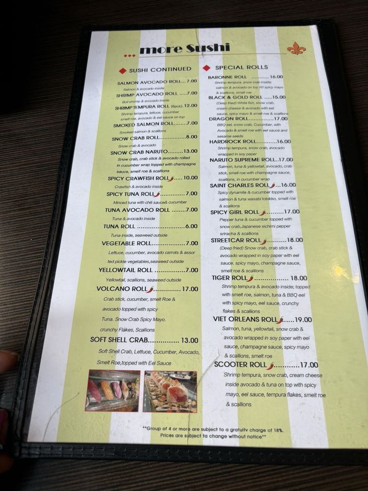 “ If you're looking for a quick and delicious lunch in New Orleans, this is the place to go! I came during a recent visit and decided to try their crawfish sushi and shared the spring rolls. The food was prepared in what felt like less than 10 minutes. The sushi was delicious! There weren't many people in the restaurant, but left me and my coworker plenty of tables to choose from. If I lived in the area, I would definitely go back! ”